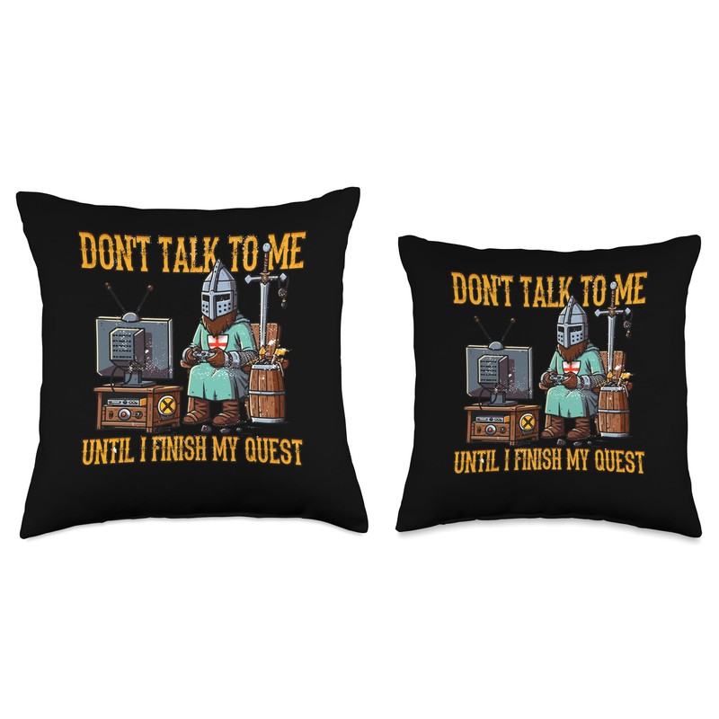 Don’t Talk To Me Until I Finish My Quest Gamer Knight Throw Pillow