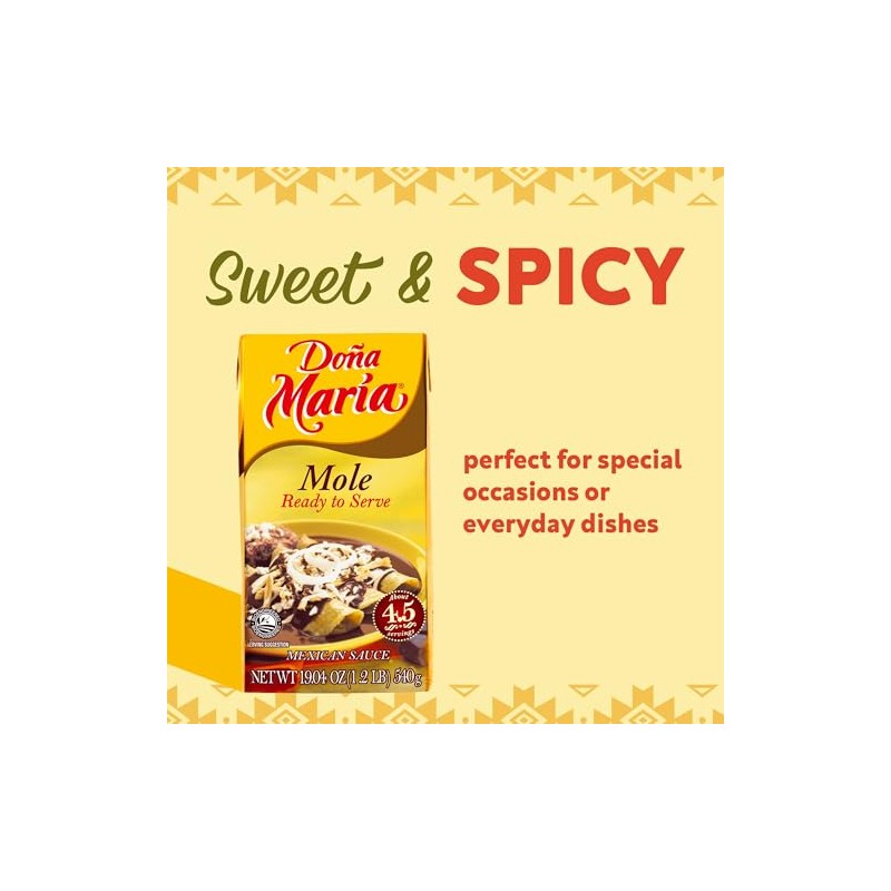 - Includes one - 19.4 oz package of DONA MARIA Ready to Serve Mole sauce