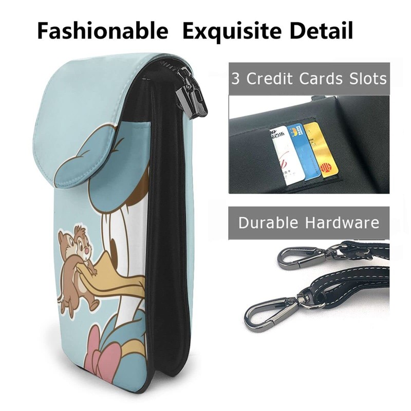 Donald Duck Smartphone Pouch, Women's, Genuine Leather, Shoulder Bag, Men's, Thin, Lightweight, Smartphone Pochette, Popular, Cute, Wallet, Mini Pouch, Crossbody Bag, Height 7.6 x Width 4.9 x
