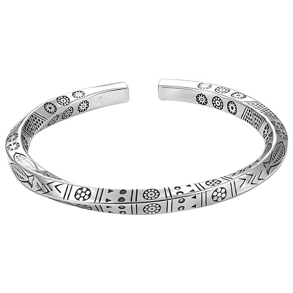 Donaly Men's Tribal Style Silver Bangle, One size, Metal, No Gemstone