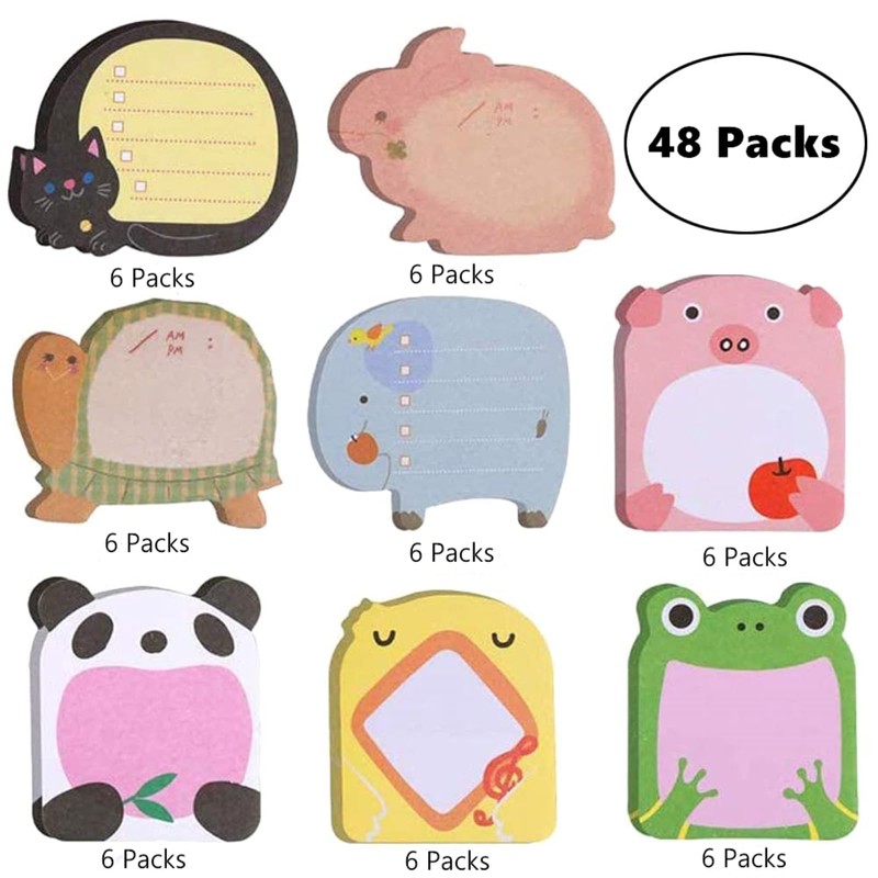 - These sticky notes are designed with eight different cute animal shapes, divided into kittens, pig, panda, elephant, frog, rabbit, chick, turtle shapes, the unique animal designs attract your attention