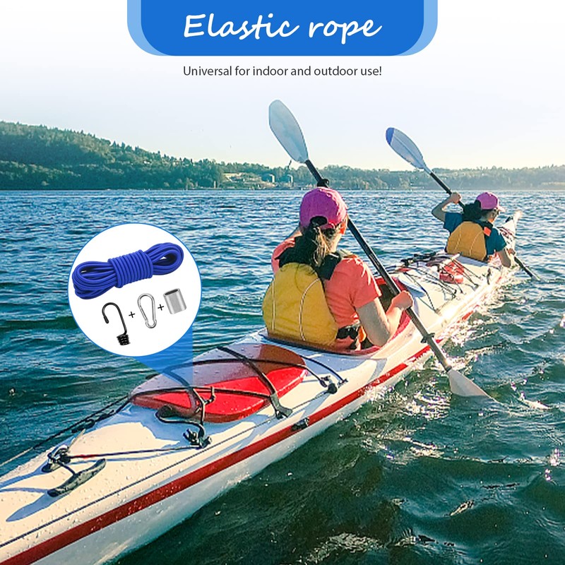 - Elastic Cord: You will receive a roll of 10M 5/16”(8mm) Thick Shock Cord and 10 bungee shock cord hooks, 2 carabiners and 4 oval crimping loop sleeves clips. The ideal solution for transporting, packing and securing items.