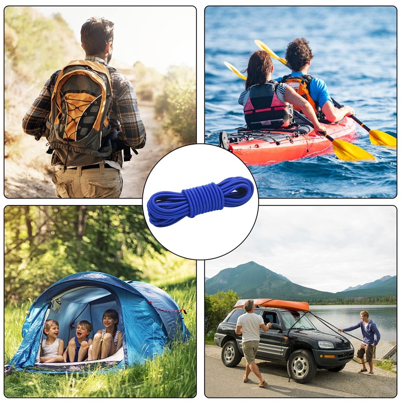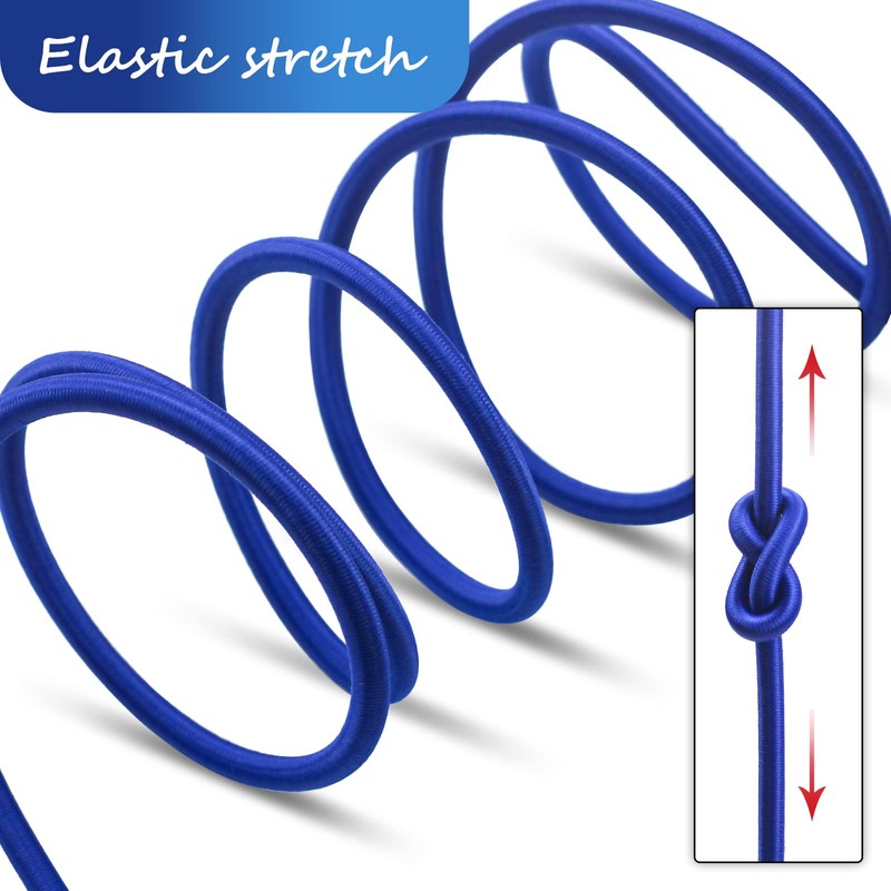 Elastic cord 8mm can fix camp tents, tarpaulins, canopies, etc. The same can also be used to secure goods on many types of vehicles such as cars, trucks, trailers, motorbikes, etc.