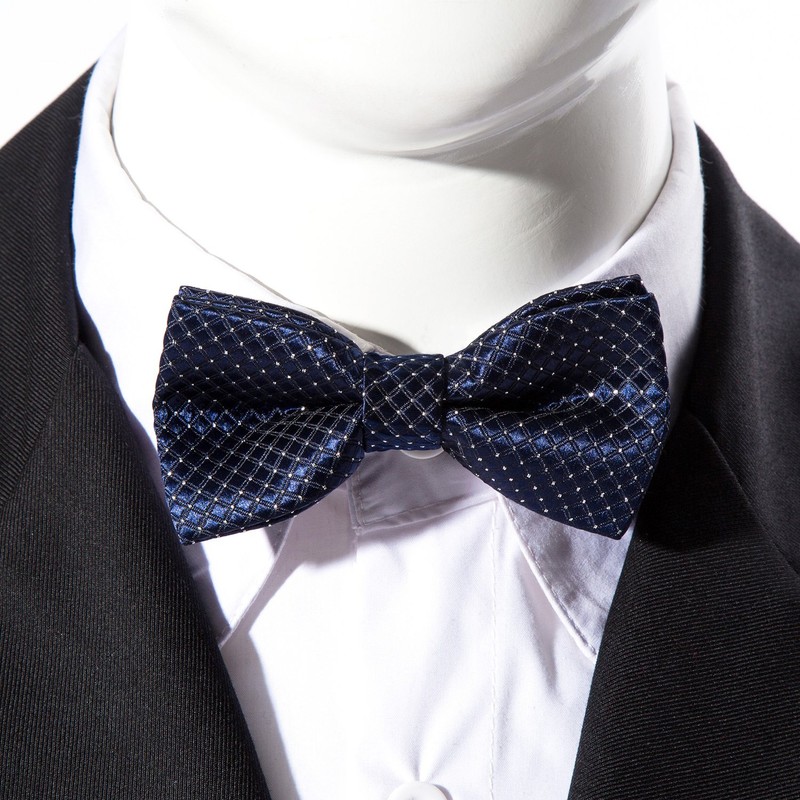 Beautiful and very well made children's bow tie with silver dots in different designs.
