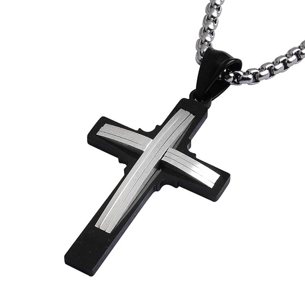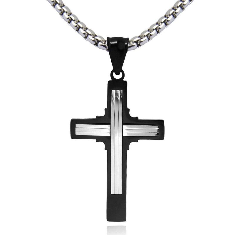 DonDon Herren Halskette mit Curved Double Kreuz-Anhänger zweifarbig Edelstahl 52 cm silberfarben und Samtbeutel