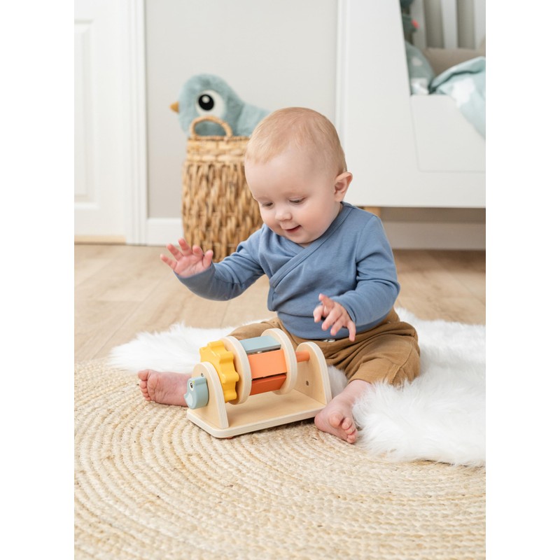 Done by Deer Activity Roll Birdee Colour Mix - Baby Montessori Motor Skills Toy for Stimulating the Sense of Touch - Wooden Toy Baby from 3 Months - Sensory Toy Baby