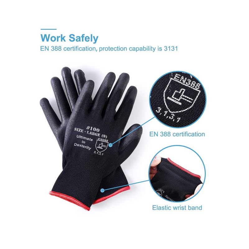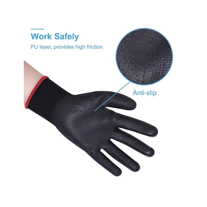 • This product has 12 pairs of gloves: the palm has a PU coating. It is elastic and wear-resistant, so that the palm cannot be easily punctured. The coating is waterproof, which further improves the tightness of the gloves and effectively isolates stains and bacteria. Non-slip, increases friction, prevents items from slipping and provides more safety.