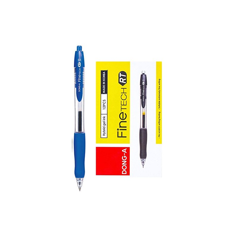 - DONG-A Fine-Tech RT Gel Ink Roller Ball Pens 0.3 mm Retractable Pack of 12 Blue
