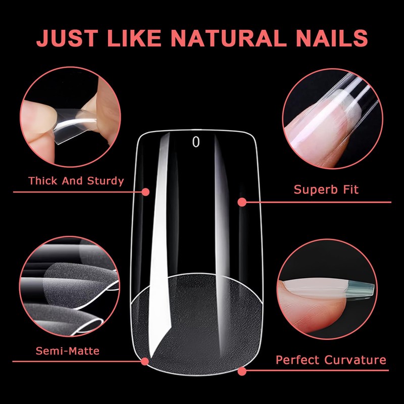 - Semi-Matte Design - The nail tips feature a semi-matte finish, which enhances friction and adhesion on the nail plate. This allows you to easily trim, file, and apply these square acrylic nail tips to create your dream nail shape. Truly a DIY manicure essential!