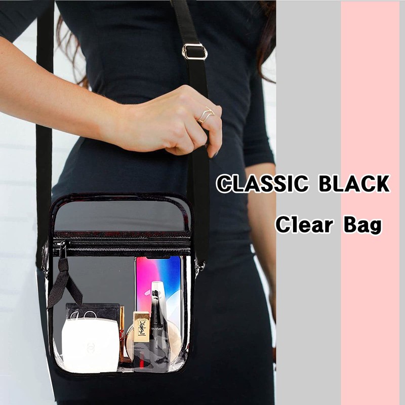 - ✅Clear Concert Bag - 9” x 7” x 2.7”IN, Clear cross-body bag suitable for workplaces that require clear bags, passed through Security with no issues,It’s time for you to have a better clear bags!