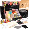 - 【A Complete Candle Making Kit】LED display wax melting pot 500 ml x 1, 24oz Soy Wax x 1,16oz Soy Wax x 1, Wax Dyes x 12,Colorful Candle Tin x 4,Glass Candle Jar with lid x 4, wooden holder x 10, wick x 10, anti-scald gloves x 2,Stirring Spoon x 1, coaster x 1 and more.Contains marker pen and writable label paper, you can make your own unique label, and each candle can is equipped with a very beautiful gift box.