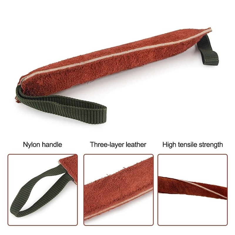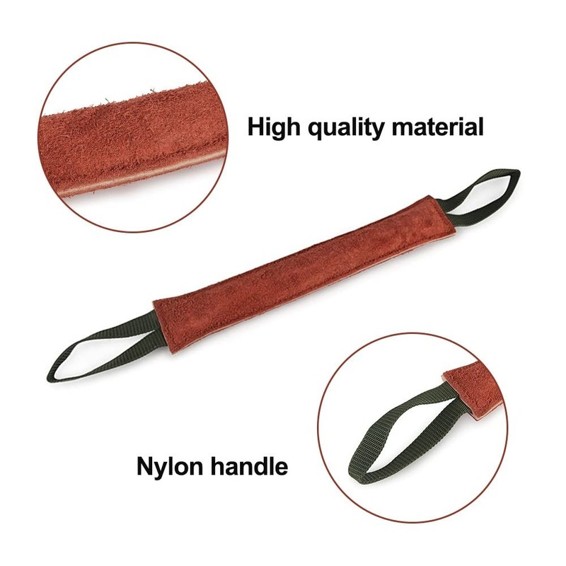 1.High quality leather strong cotton is very sturdy and protects dog teeth. Polyester edge cover ensures that the tugboat is strong and well constructed, even for heavy duty and active bite training;