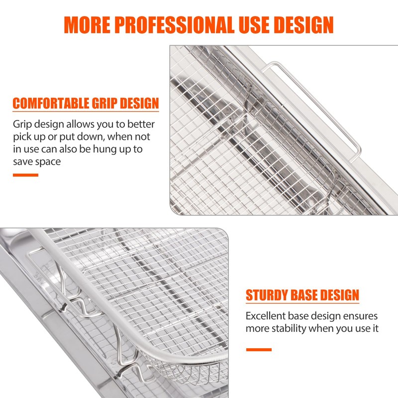 - 【Easy Clean-up and Dishwasher Safe】- The mesh basket is made of quality stainless steel, fits most ovens and easy to clean with soap and water. After the cooking, you can place the mesh basket in the dishwasher for quick and easy cleanup.