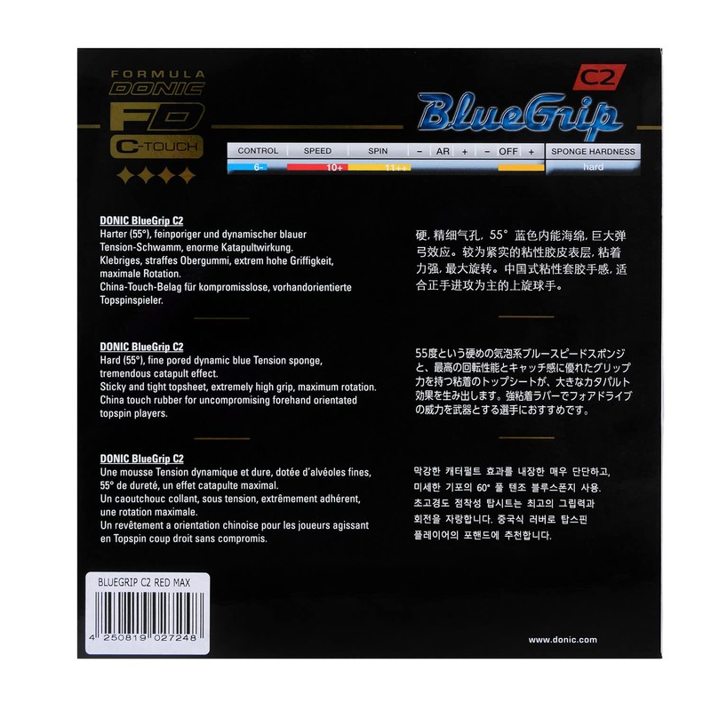 - DONIC rubber BlueGrip C2, red, 2.3 mm
