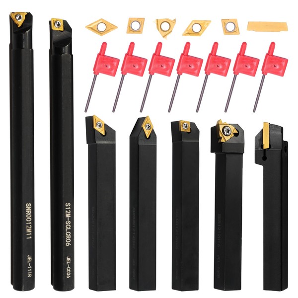 • Lathe Tools Set: 7pcs 12mm Shank Boring Bar Holder +7pcs Carbide Insert Lathe Turning Tools + 7pcs T8 Wrenches