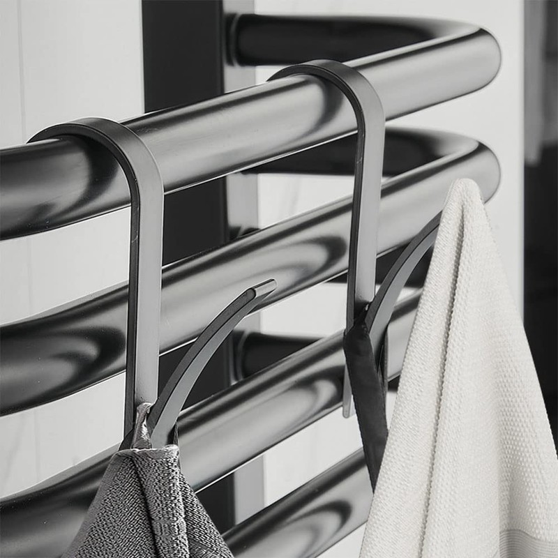 DonLeeving 6 Pieces Bath Hook Holder Plastic Heated Towel Rail Radiator Hooks Tubular Bath Hook Holders Crook Grab (Black)