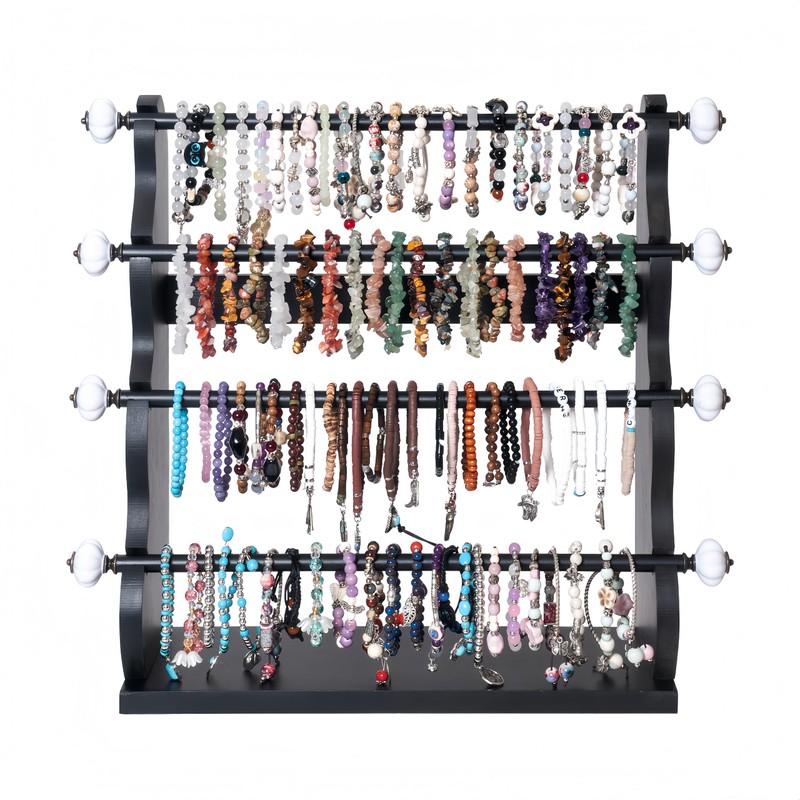 - Elegant Black Finish: Experience the perfect blend of functionality and style with the sleek black wood finish of our bracelet holder. It not only organizes your jewelry but also complements your home decor, adding a touch of sophistication to any room.
