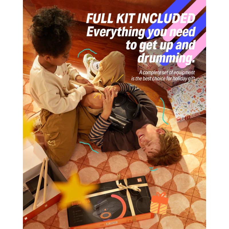 - [ Ideal Music Enlightenment Toy Gift For Kids ] You can send the DED-20 electric drum set for your kids, families, and friends as gifts for Birthdays or Christmas. It contents:1 x electronic drum pad(mobile power charging support), 1 x power adapter, 1 x USB data cable, 1 x 3.5mm audio cable, 1 x drum sticks, 2 x drum pedals. Any questions contact us.