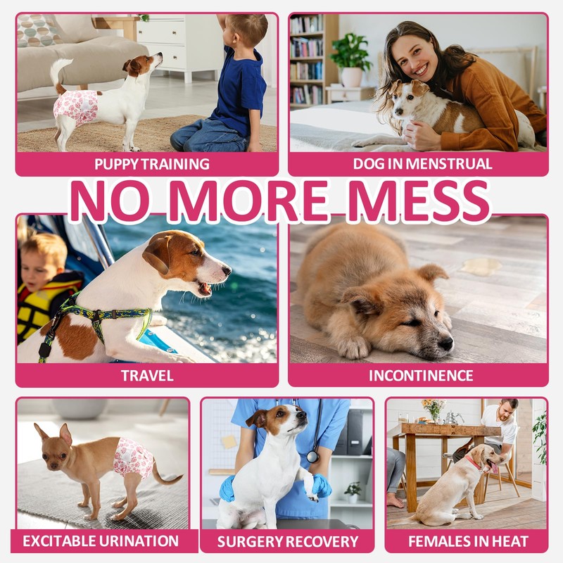 - MULTIPLE DOGGY DIAPERS: Female dog diapers help address multiple needs such as menstrual cycles, excited urination, dog in heat, incontinence, puppy training, and travel. Dono dog pampers female are your assistant to keep your home clean