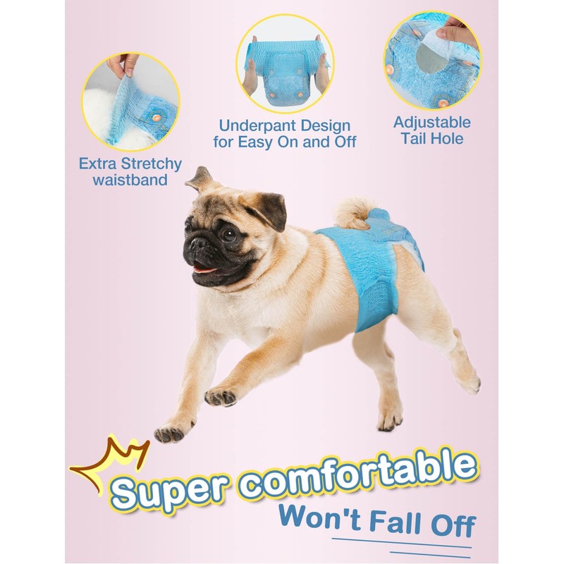 - 360° ELASTIC WAIST DIAPERS: Dono disposable dog diapers feature a 360° elastic waistband for easy on and off. The 1.2-inch wider waistband conforms to your dog's shape, ensuring a comfortable fit that stays secure during activity.