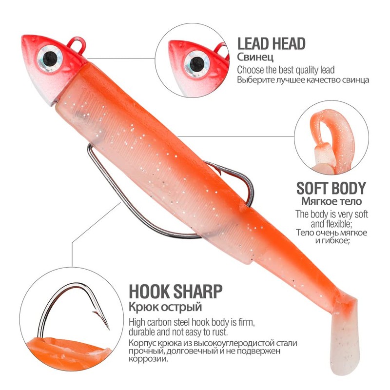- Realistic swimming action: The soft body with lead jid heads is a supernatural sand eel imitation that is the favourite snack with many predators. T-shaped tail can create incredibly realistic swimming actions in the water to trigger punches.