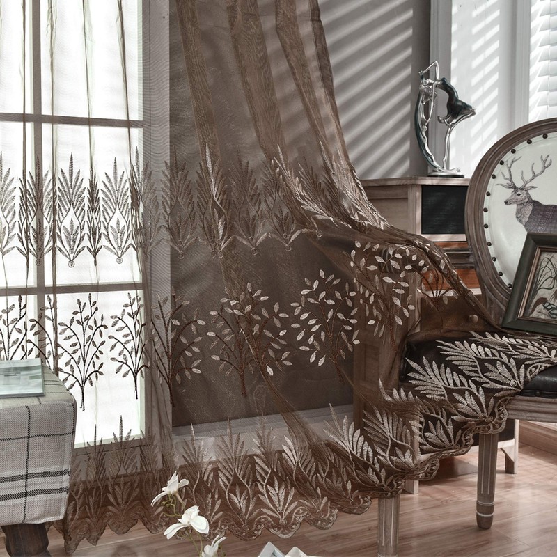 - DONREN Leaves embroidery sheer curtain is made of 100% high quality polyester which feel more soft and smooth.