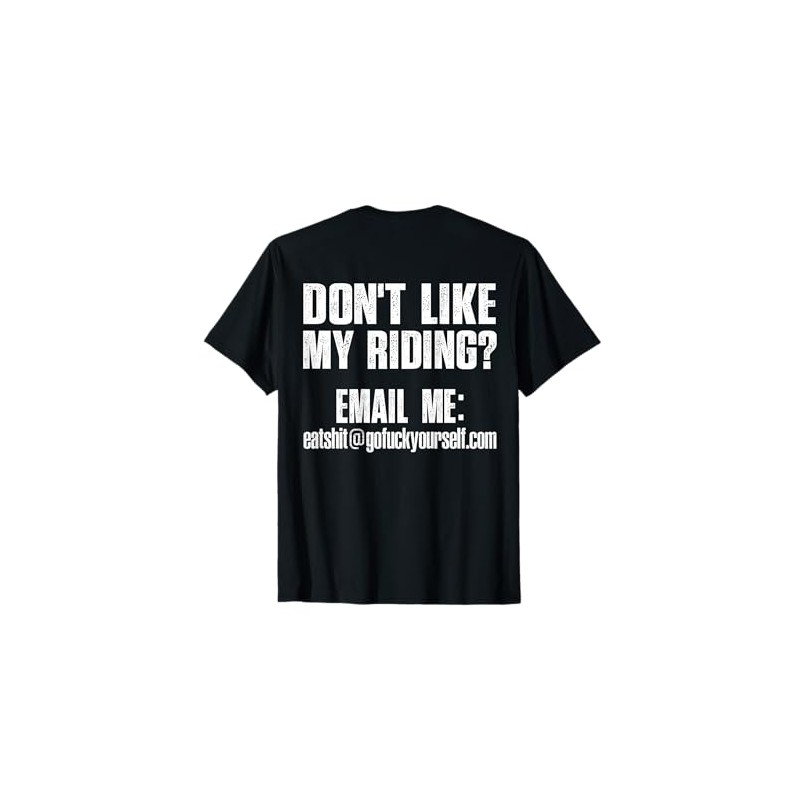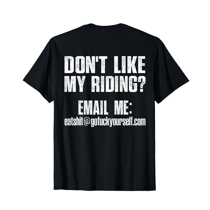 - Don' t Like My Riding Email Me Eashit@gofuckyourself.com Biker (ON BACK) Tee - Humor Sarcastic Tee Ideas For Men, Women, Mother, Father, Mom, Dad, Daughter, Son, Sister, Brother, Friends, Family, Girls, Boys.
