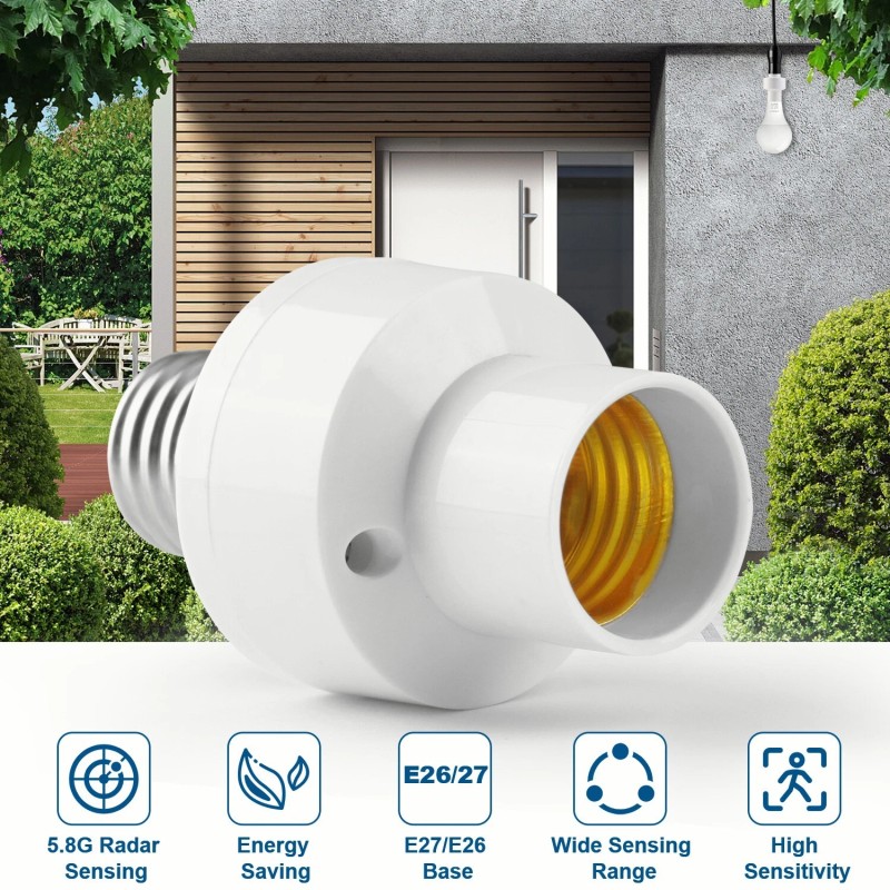 Donwell Radar Motion Sensor Bulb Holder E26/27 LED Light Lamp Socket Base Adapter USA