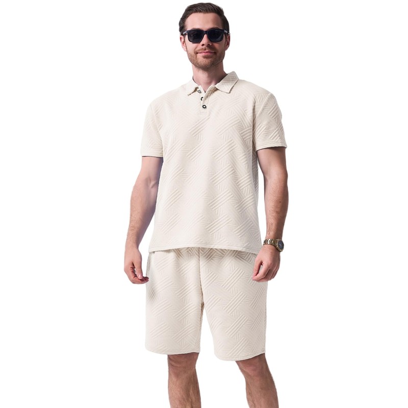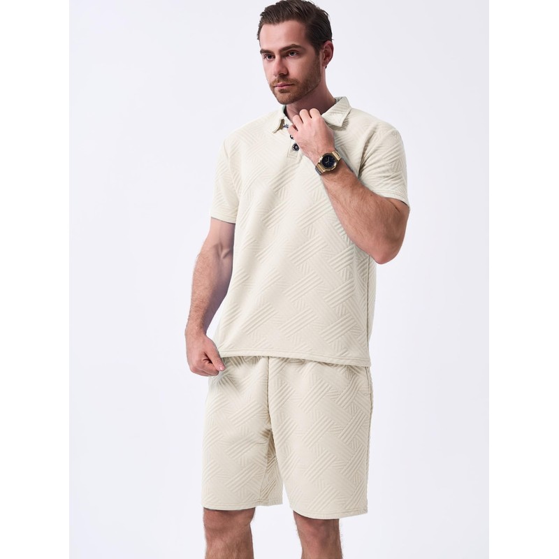 - Features: 3D painting, fashionable and new, men's short sets outfits tracksuit 2 pieces: short sleeve polo shirt with half zip, short trousers, 2 side pockets, elastic waist design with a drawstring to maintain high performance in sports