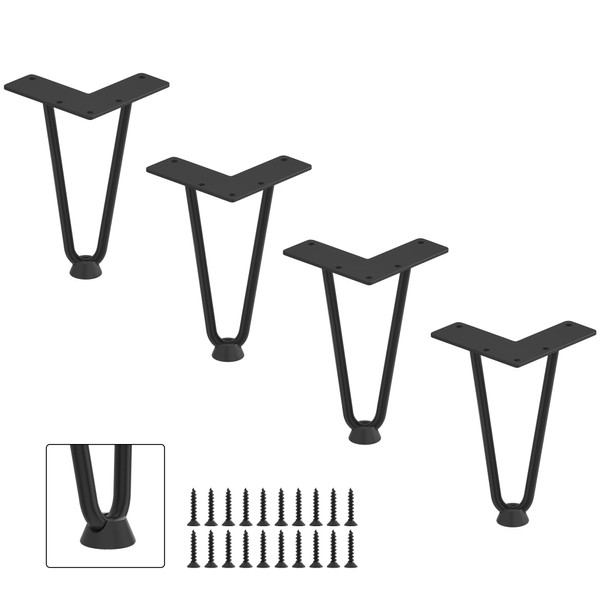 - 【Package Contents & Easy Installation】4 x Hairpin Legs, 4 x Rubber Protectors, 20 x Screws. Each mounting bracket is pre-drilled with 5 screw holes, just tighten the provided screws in the table board with your own electric drill. It will take just a few minutes to finish the installation.