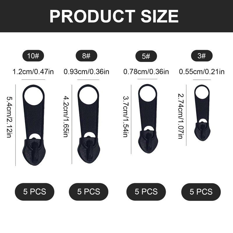• Versatile Feature: This 20 pcs zipper pull replacement kit includes 4 different sizes (3/5/8/10) to fit a wide range of zippers, ensuring you have the right size for any repair