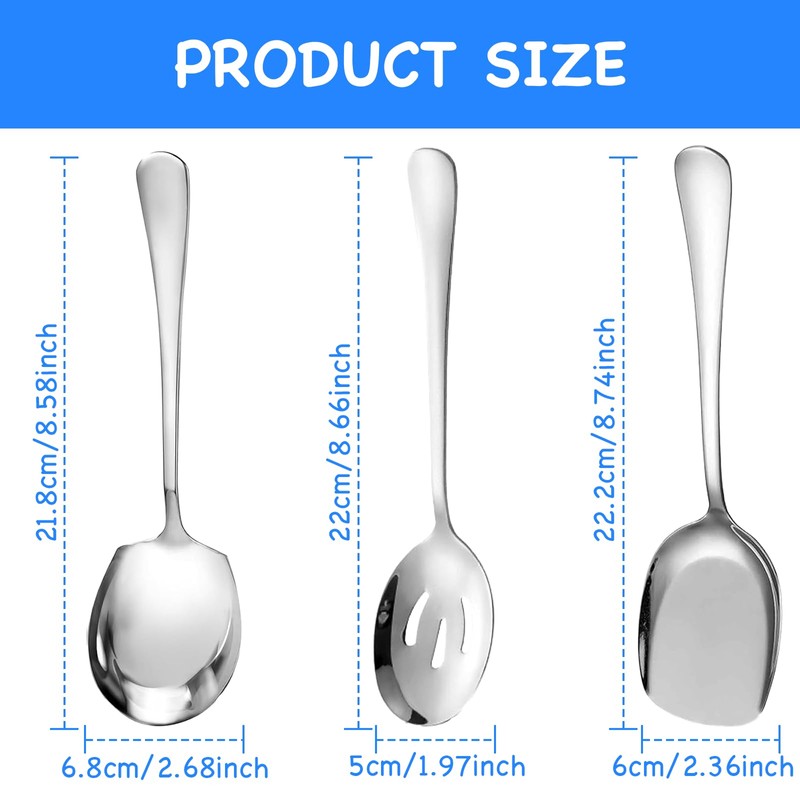 - Stainless Steel Durability: Crafted from stainless steel, the serving spoons are designed to withstand the rigors of daily use, ensuring long-lasting performance, maintaining their shine over time