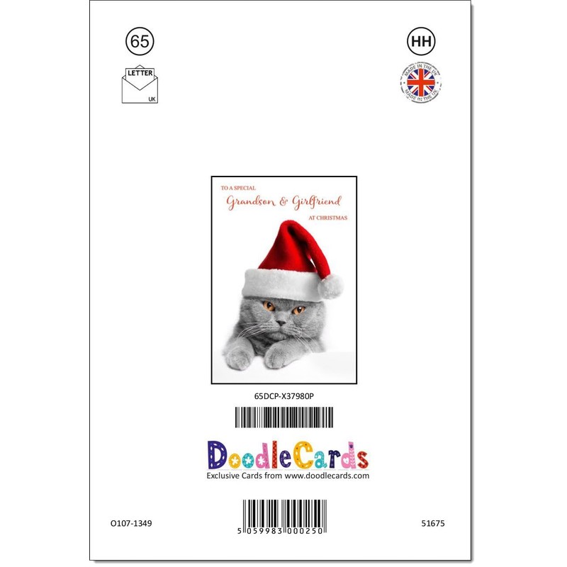 - DOODLECARDS ⭐ Grandson and Girlfriend Christmas Card Grey Cat with Santa Hat Medium Size Christmas Card for Grandson & Girlfriend with Plain Envelope