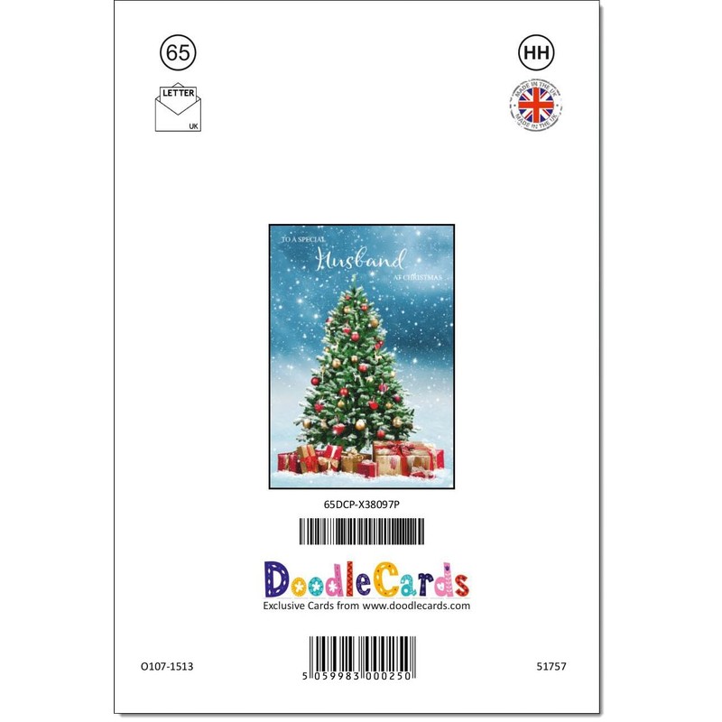 - DOODLECARDS ⭐ Husband Christmas Card Christmas Tree and Parcels Medium Size Christmas Card for Husband with Plain Envelope