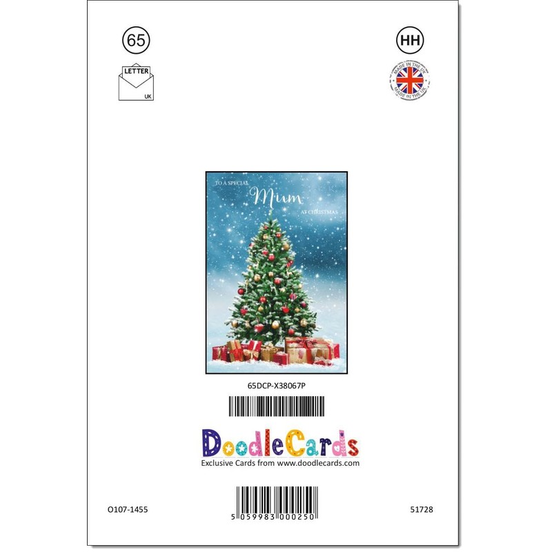 - DOODLECARDS ⭐ Mum Christmas Card Christmas Tree and Parcels Medium Size Christmas Card for Mum with Plain Envelope