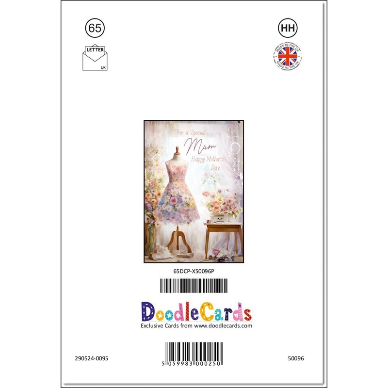 doodlecards Mum Mothers Day Card Dress making Medium Size with Plain Envelope