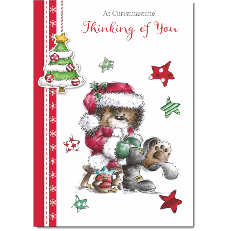 doodlecards Thinking Of You Christmas Card Cute Bear Medium Size Christmas Ca...