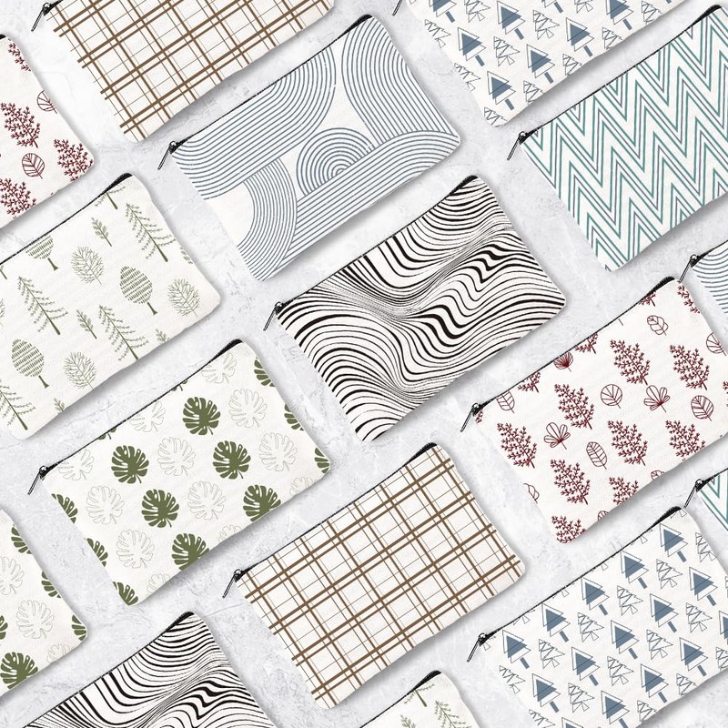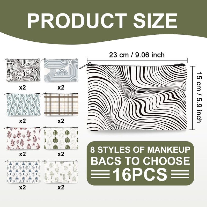 Doodlream 16Pcs Canvas Geometric Texture Makeup Bag, 23 x 15 cm Leaves Trees Cosmetic Bags Travel Organizer Portable Accessories with Zipper, Toiletry Large Capacity, Purse Organizer Pouches