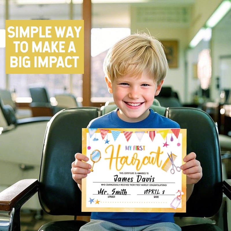 - Size: 9.8" x 7.8" sheet size certificate papers to use at baby hair salon