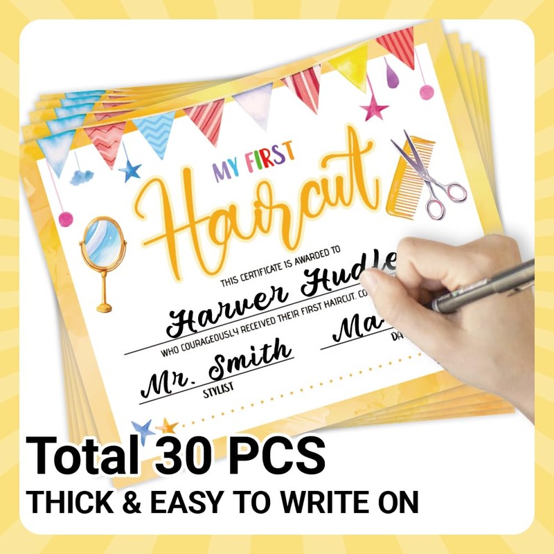 - 30 Pack First Haircut Certificate Papers: You will get a total of 30 pieces of blank cartoon baby hair salon certificates, which are enough to be sent to your family or friend kids