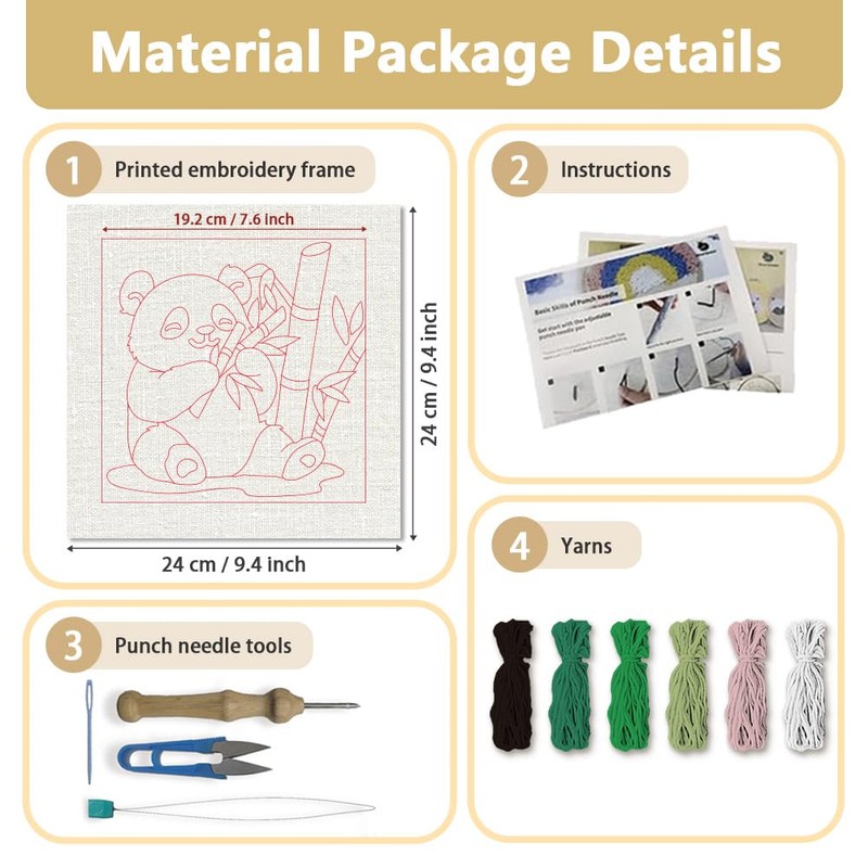 - Cute Panda Pattern: Bring relaxing nature elements decor to your home with this cute panda eating bamboo pattern punch needle starter kit