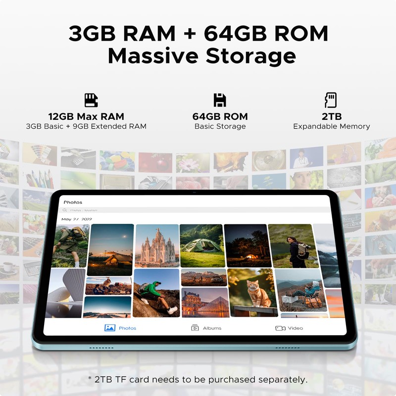 - 【𝟏𝟐𝐆𝐁 𝐑𝐀𝐌 + 𝟔𝟒𝐆𝐁 𝐑𝐎𝐌 + 𝟐𝐓𝐁 𝐄𝐱𝐩𝐚𝐧𝐝𝐚𝐛𝐥𝐞】This Android 15 tablet features 12GB RAM (3GB base + 9GB expandable), ensuring smooth multitasking and responsive performance. Switch between apps, stream videos, or browse with ease. With 64GB of internal storage and support for up to 2TB via MicroSD card, you’ll have ample space for apps, photos, music, and documents—perfect for both entertainment and productivity.