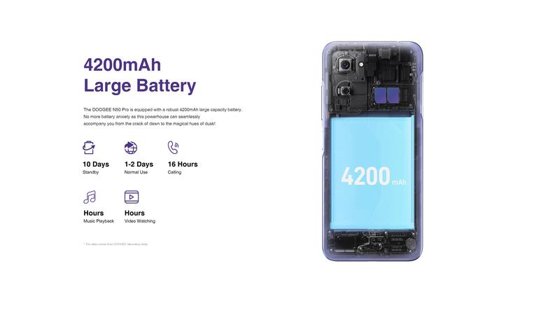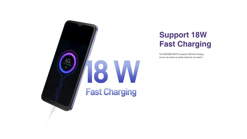 Doogee N50 PRO Cellphone,Android 13 Smartphone,20GB+256GB,6.52" HD Screen ,50MP AI Camera,4200mAh Battery,Face Unlock/OTG-Black/Fingerprint,Dual Card Sim smartphone - Color: Purple