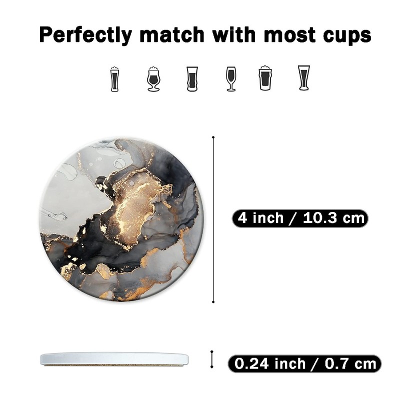 - FITS ALL DRINKWARE : Our 4-inch diameter drink coaster can hold cocktail glass, beer glass, goblet, coffee cup, plastic cup, silicone cup and some small cutlery, almost all types of cups. No matter which cup it matches with, it is very beautiful and coordinated.