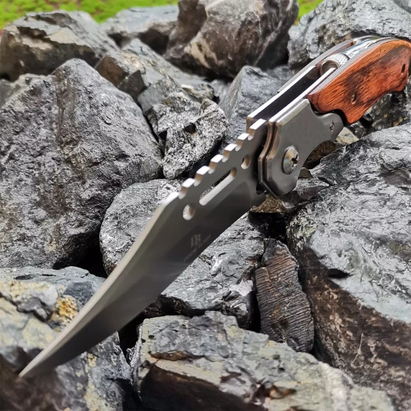 Pocket Knife Outdoor Tactical Knife Wood Handle Combat Camping Self-defense Knife Hunting Survival Knives EDC Multi Tool