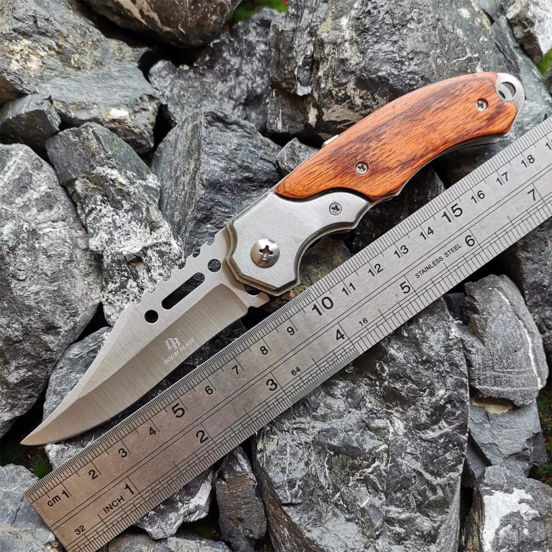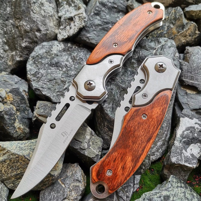 doom blade Lightweight Wooden Handle Jungle Defense Sharp Folding Knife with ...