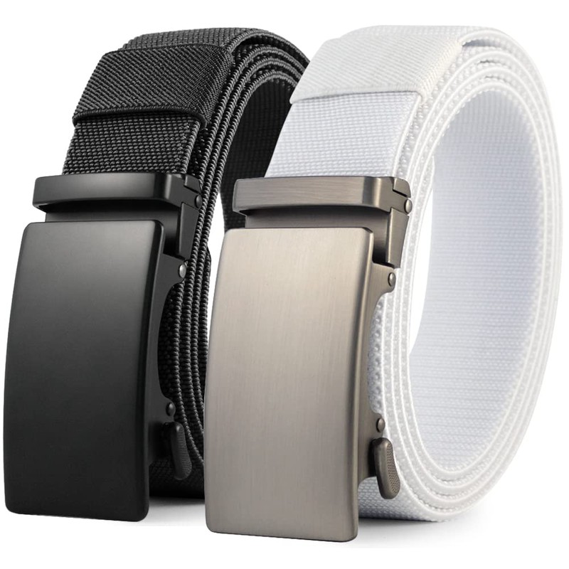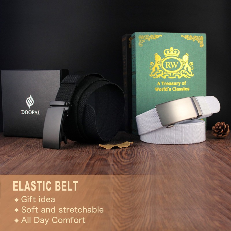 DOOPAI - Cinturón de golf elástico para hombre, cinturón de nailon para hombre, cinturón de carraca casual, ajuste ajustable para adaptarse, Negro + Blanco, 48-58 waist adjustable 150cm
