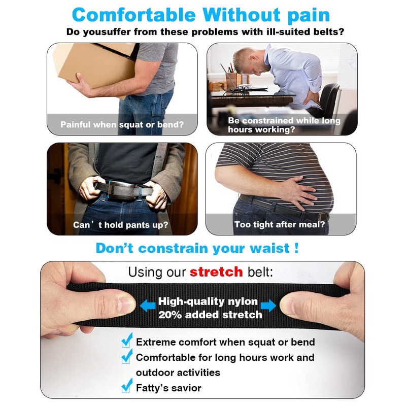 - 👉【Nuevo diseño deslizante externo 2022】: en comparación con el cinturón invisible deslizante interno que debe poner tu dedo debajo del cinturón y difícil de apretar el cinturón, nuestro diseño de cola exterior solo necesita sostener la cola externa, un segundo para apretar, mucho más fácil y rápido, también puede hacer algunas situaciones incómodas