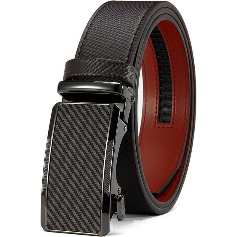 DOOPAI Men's Adjustable Ratchet Belt - Brown Leather Dress Belt for Men, Customizable Fit, Easy to Use, Maximum Durability