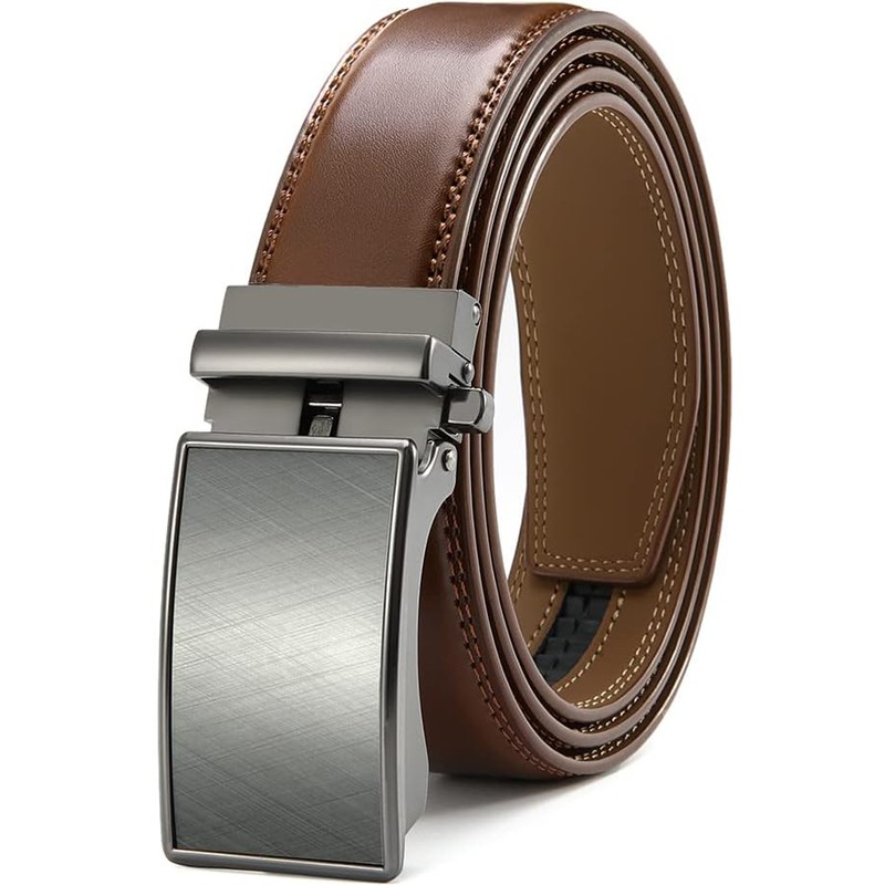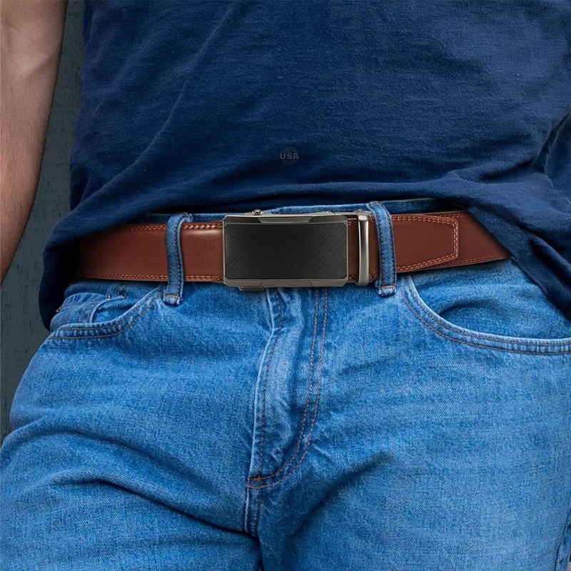 DOOPAI presents the Men's Adjustable Ratchet Belt, crafted with genuine leather for a refined and high-textured look. Achieve the perfect fit with up to 1/5" adjustments, ensuring a comfortable and precise fit wherever you go. The easily removable buckle allows you to cut the belt to your ideal size, making it tailored to your unique style. Simply slide it into the sliding buckle, pull it through, and the click-it buckle automatically locks in place. Releasing the belt is just as easy - gently push the lever on the side of the automatic buckle, and the lock snaps shut. The high-density stylish buckle is not only lighter but also scratch-resistant, ensuring the belt's longevity and durability. Customize the size by removing the buckle and cutting the strap to avoid the hassle of too short belts. With 32 ratchet notches providing micro size-adjustments of 0.25", you can follow the variation of your waist precisely. Embrace the perfect blend of style and durability with the DOOPAI Men's Adjustable Ratchet Belt. Perfect for any occasion, this belt is a must-have accessory for every man's wardrobe.